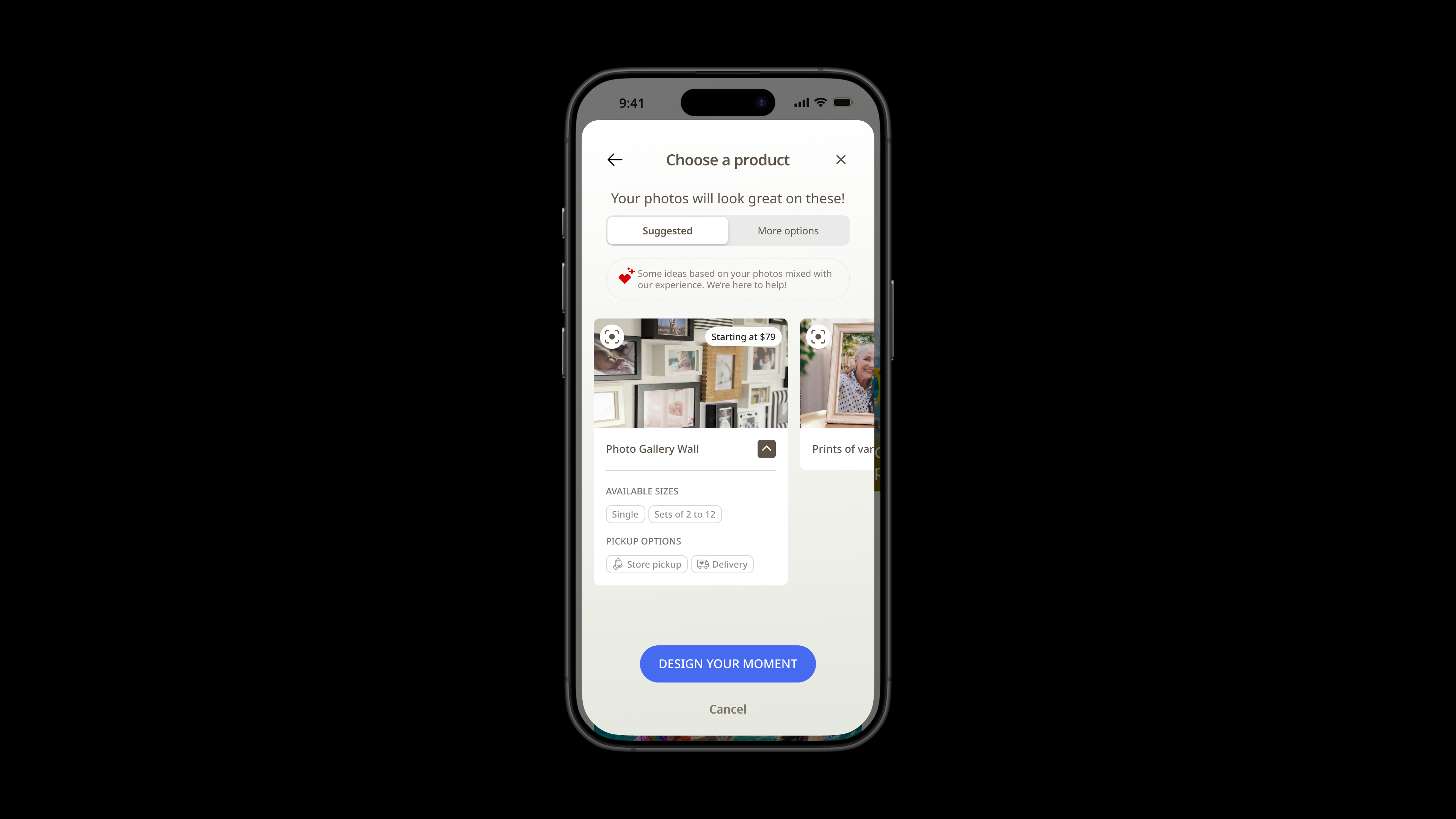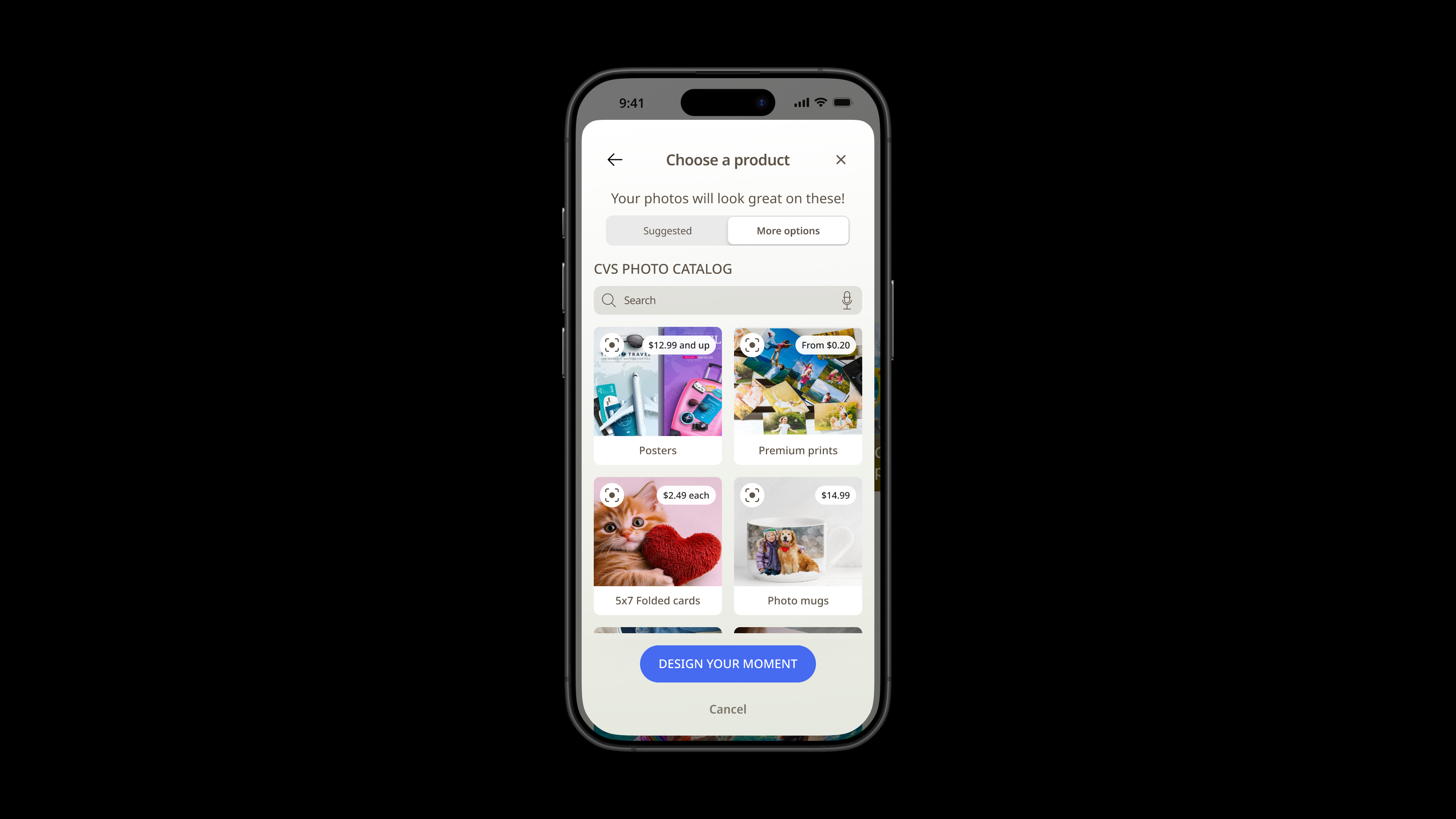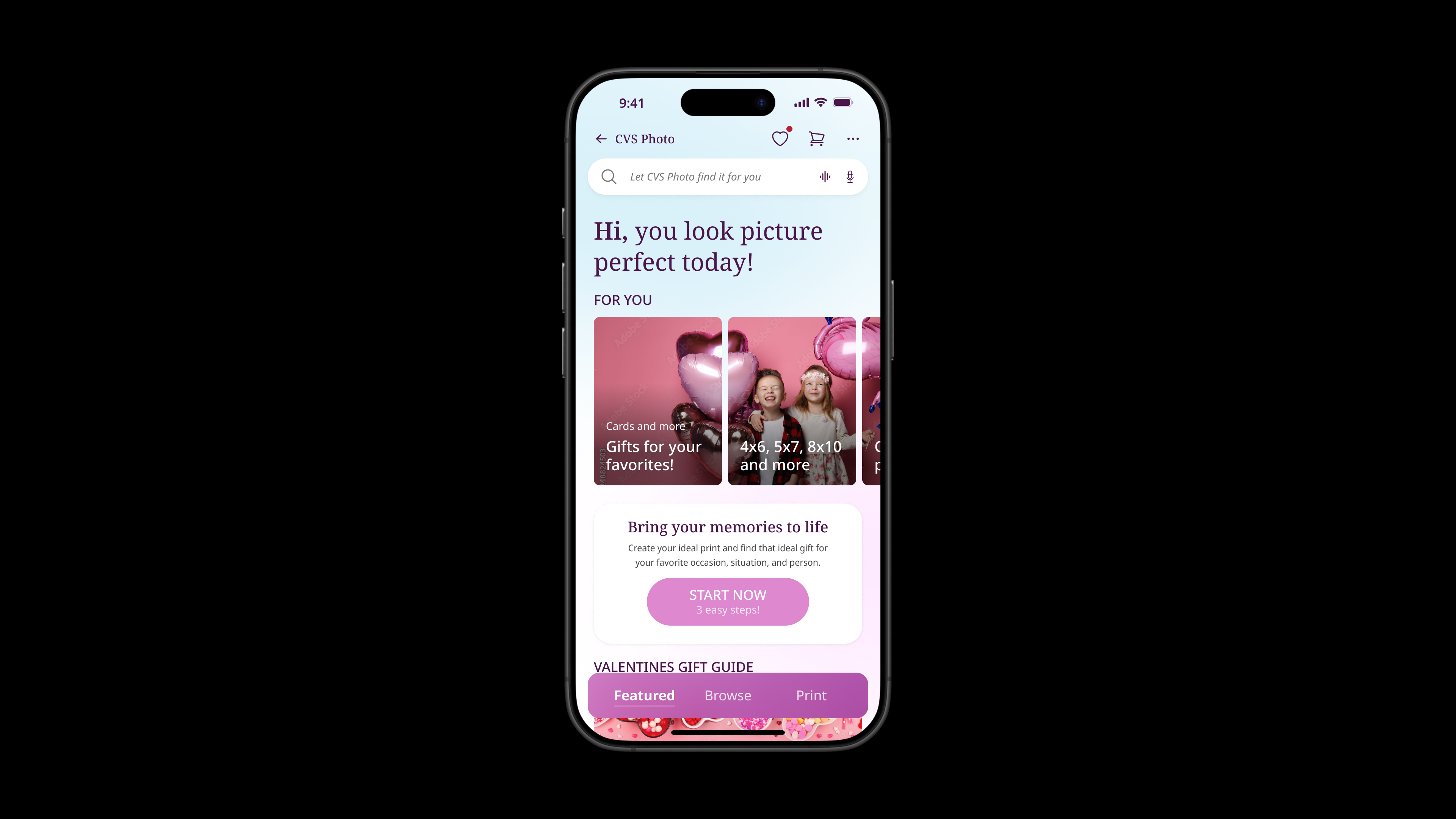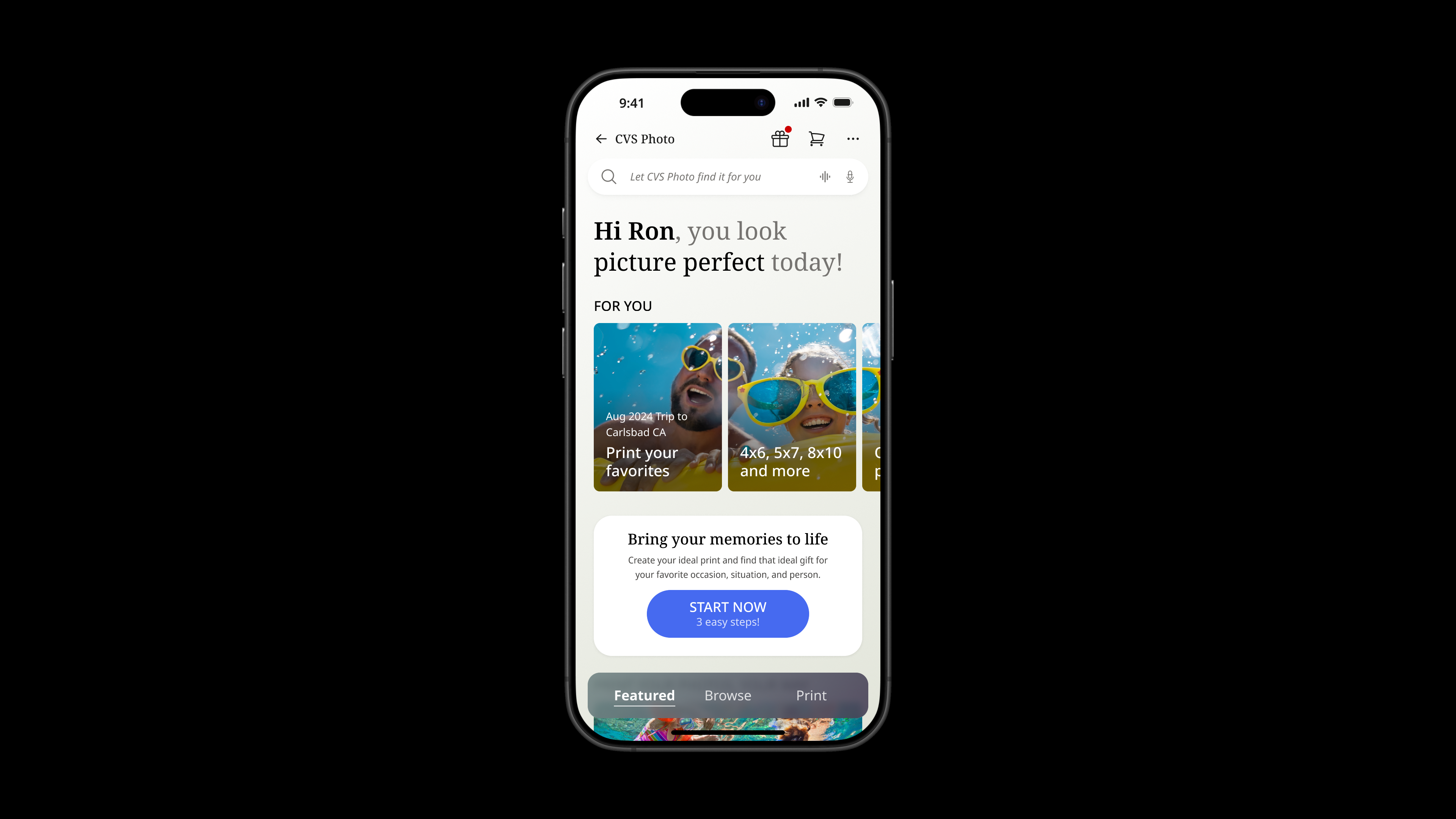 App design for changing a white-labeled retail site into an iOS application with enhanced AI features, personalization, simplified browsing, and an overall memorable experience.